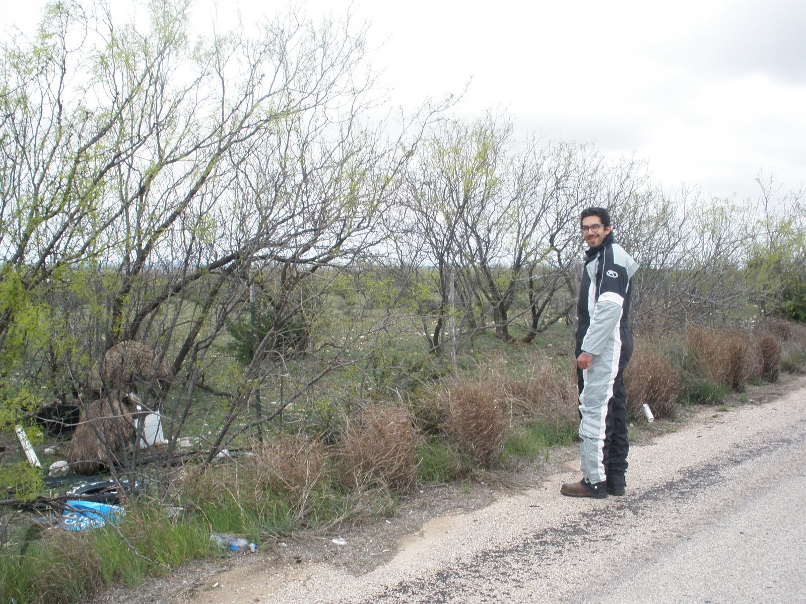Charlie checking out the emus off hwy 87, just outside Big Spring.