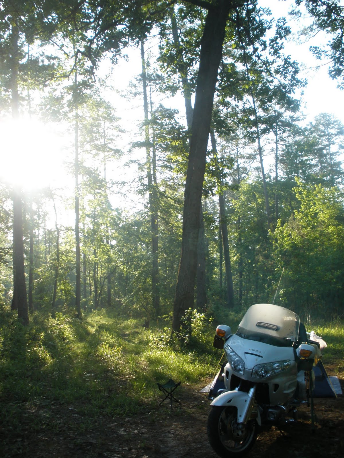 April 20, 2010 - Another winding drive day, we headed northeast, closer to our midwest destination of Oklahoma. From highways 281 to the 190 to the 7, we ended 270 tired miles later in the Davy Crockett Natl' Forest. After a long Texas farmland drive with cattle ranches for days & miles to see, we settled for camping off a side road in the forest near the town, Ratcliff. The evening was alive with insects buzzing and mammals trampling on the leafy ground. The Big Dipper was shining bright this evening.
