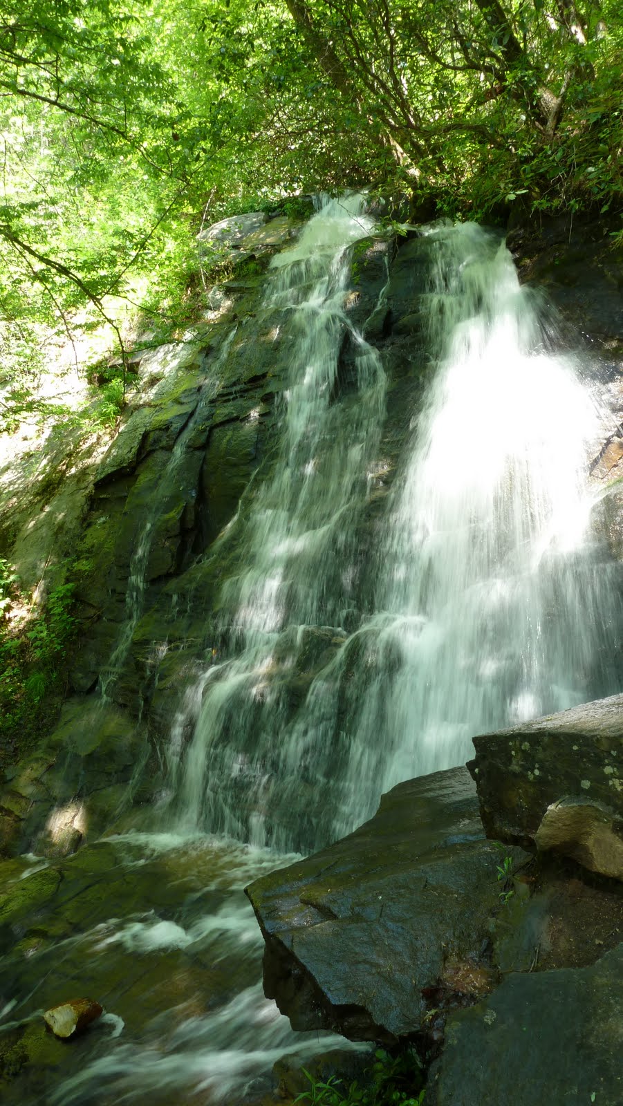May 5, 2010 - Driving 250 miles from Congaree, we headed north and slightly west towards the Great Smokies. Encompassing over 800 square miles in the Southern Appalachians, we stayed 2 nights at Deep Creek campground in America's most visited park- the Great Smoky Mountains National Park, North Carolina. Driving the winding roads through a surprisingly over-developed, tourist-casino-souvenir filled Cherokee City & Cherokee Indian reservation, we arrived the camp near Bryson City. We had great weather and a pleasant, tree-shaded camp next to Deep Creek. Our 4 mile hike was awesome, with crazy inclines, butterfly watching and pathways which led to 3 different waterfalls. On our last day, we drove out via the Blue Ridge Parkway, a crazy, switchback ridge byway with spectacular views and colors of the Appalachian ranges.