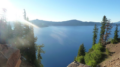 July 12, 2010 -After our experience at Stewart Mineral Springs, we finally head out of California and onto Oregon.  We arrive Mazama campground at Crater Lake National Park, 132 miles north of Weed, CA.  I still remember visiting Crater Lake when I was 5 years old, quite a sweet, fond memory as a child with my family.  This overnight stop with breathtaking views of the super caldera is a collapsed volcano formerly called Mt. Mazama, and now is present day Crater Lake.  Our unfortunate camp was riddled with thousands of mosquitoes, infesting the snow melt and waiting for a piece of our exposed skin.  We literally set up and took down camp fully clothed with our helmets and gloves on.  All we could do was just sit around in the tent as they swarmed it like bees.  We dared to take a hike when the day cooled, but we were not free of the bloodsuckers.  They were all over the Crater Lake hike, shortening the glorious views as we ran back to the bike.  Too bad this magnificent place was infested with mosquito swarms!