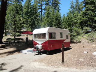 June 26, 2010 - Driving only 55 miles from Fresno on the 180 east, we decided to camp once again in Kings Canyon National Park. We love Kings Canyon and have camped in this classic California forest many times before. It was a no-brainer for us to enjoy it once again before heading back to Sunset Beach. Our camp at Grant Grove was just right, covered in Sugar Pines, Sequoias, and other large pines shading the area. We took our longest hike yet on the trip, a 6 mile loop with quite a strenous elevation gain for me and Charlie's out of shape bodies (too much sitting on the bike for hours on end). Our scenery through the thick forest took us to a waterfall, stands of old growth Sequoias at Grant Grove and to the general store for well-deserved ice cream at the end of the long loop! It was a long, bright summer day and a cool night. Perfect before our drive to Visalia, to see one of my best gals and her family.