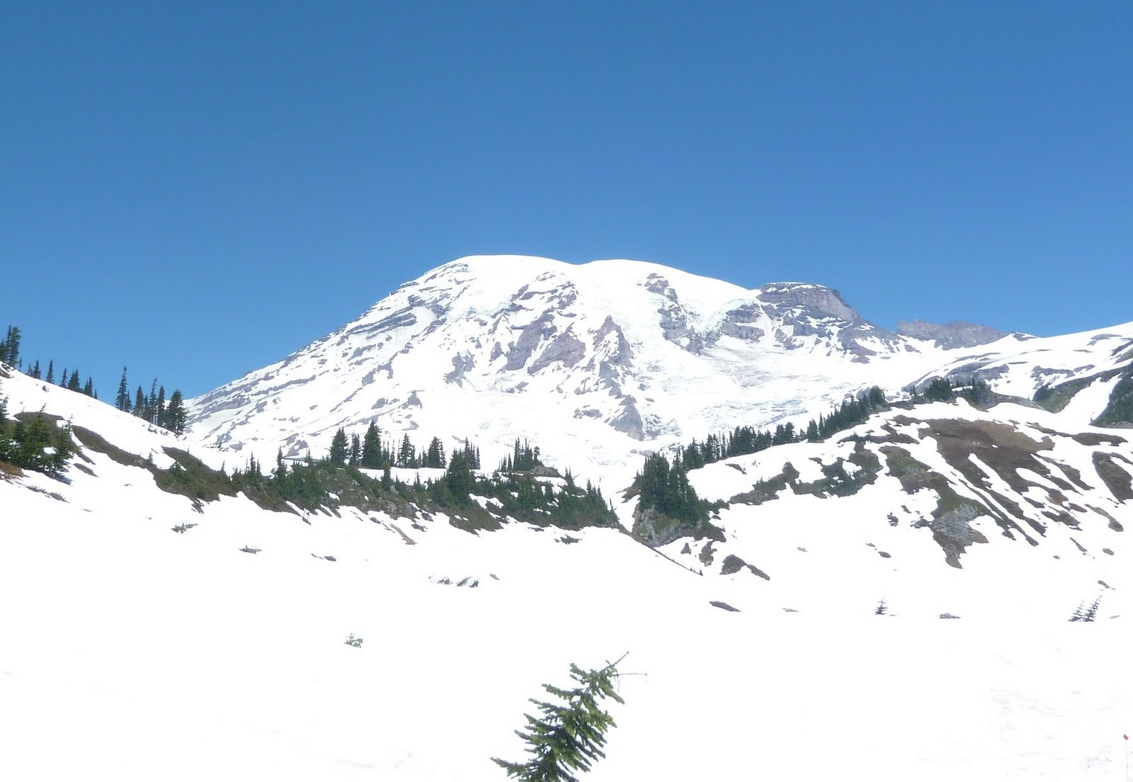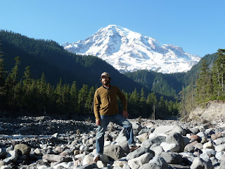 Our snow hike with Mt. Rainier at the base...Charlie and I are determined to peak this volcano next trip around!