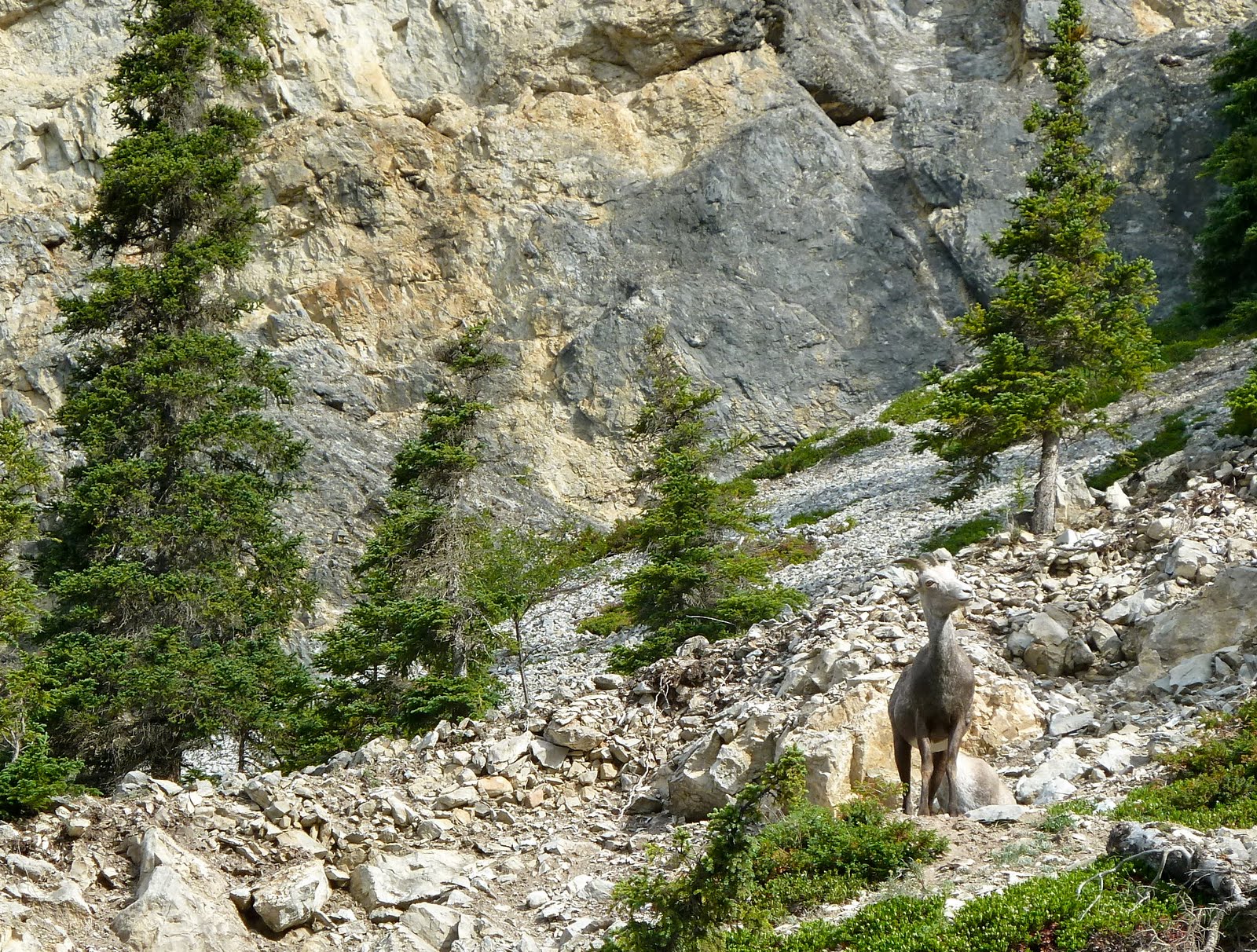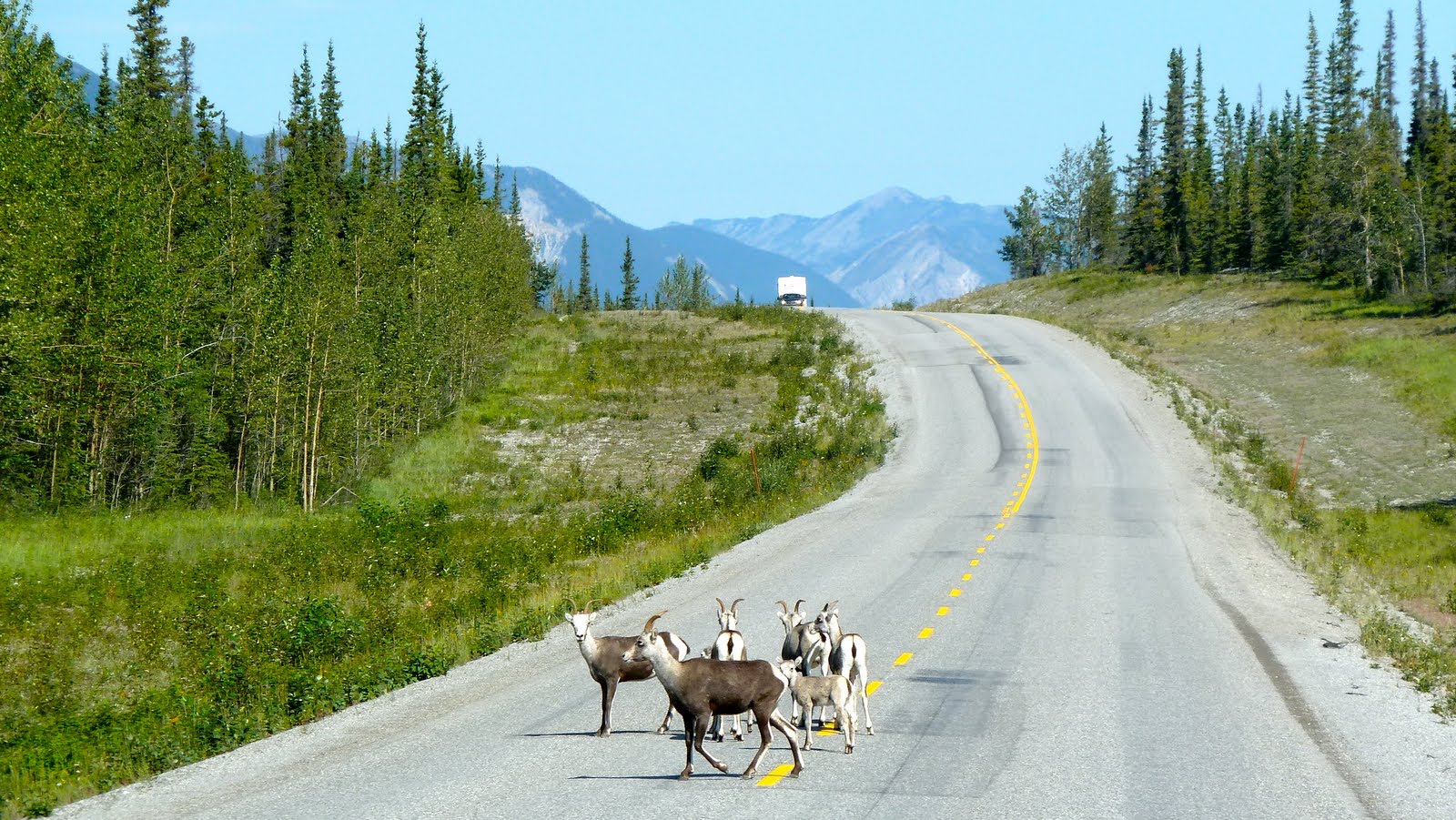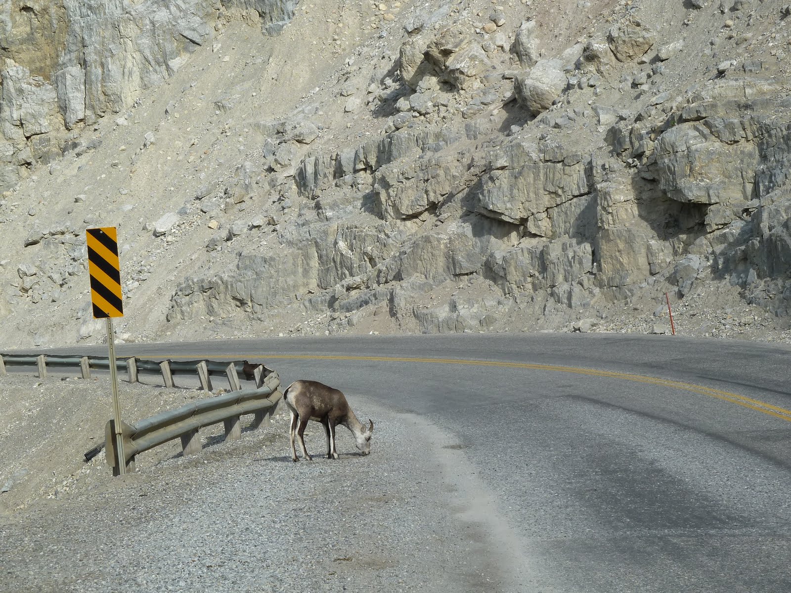 Heading out of Summit Lake, we spot our first wildlife crossing!  A Stone Sheep.