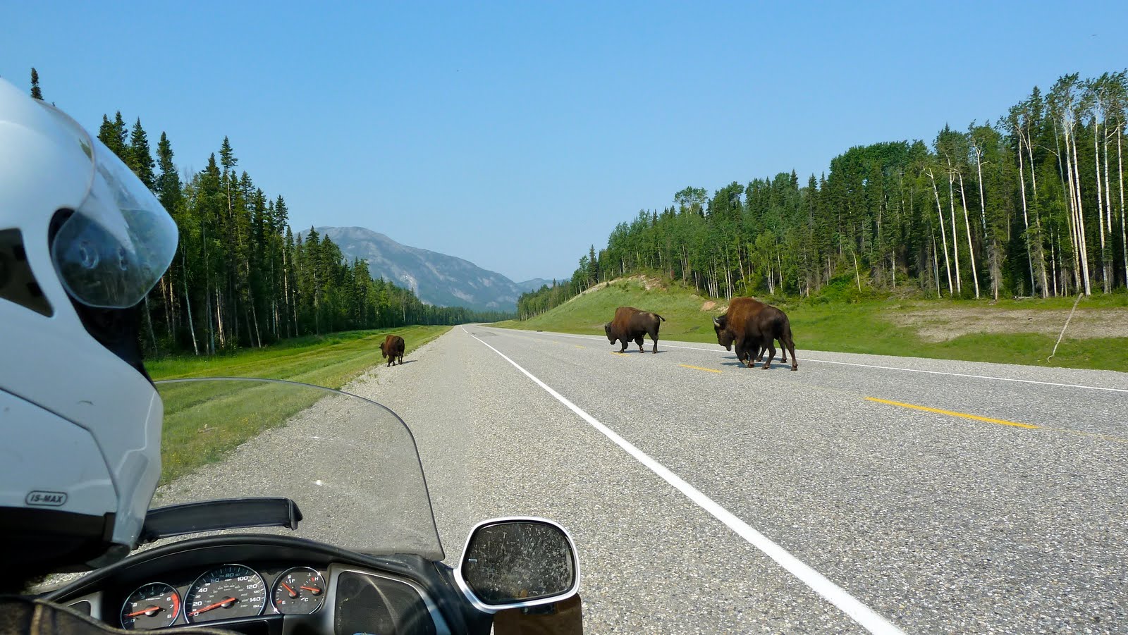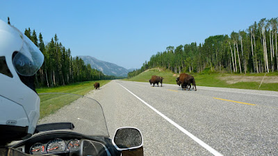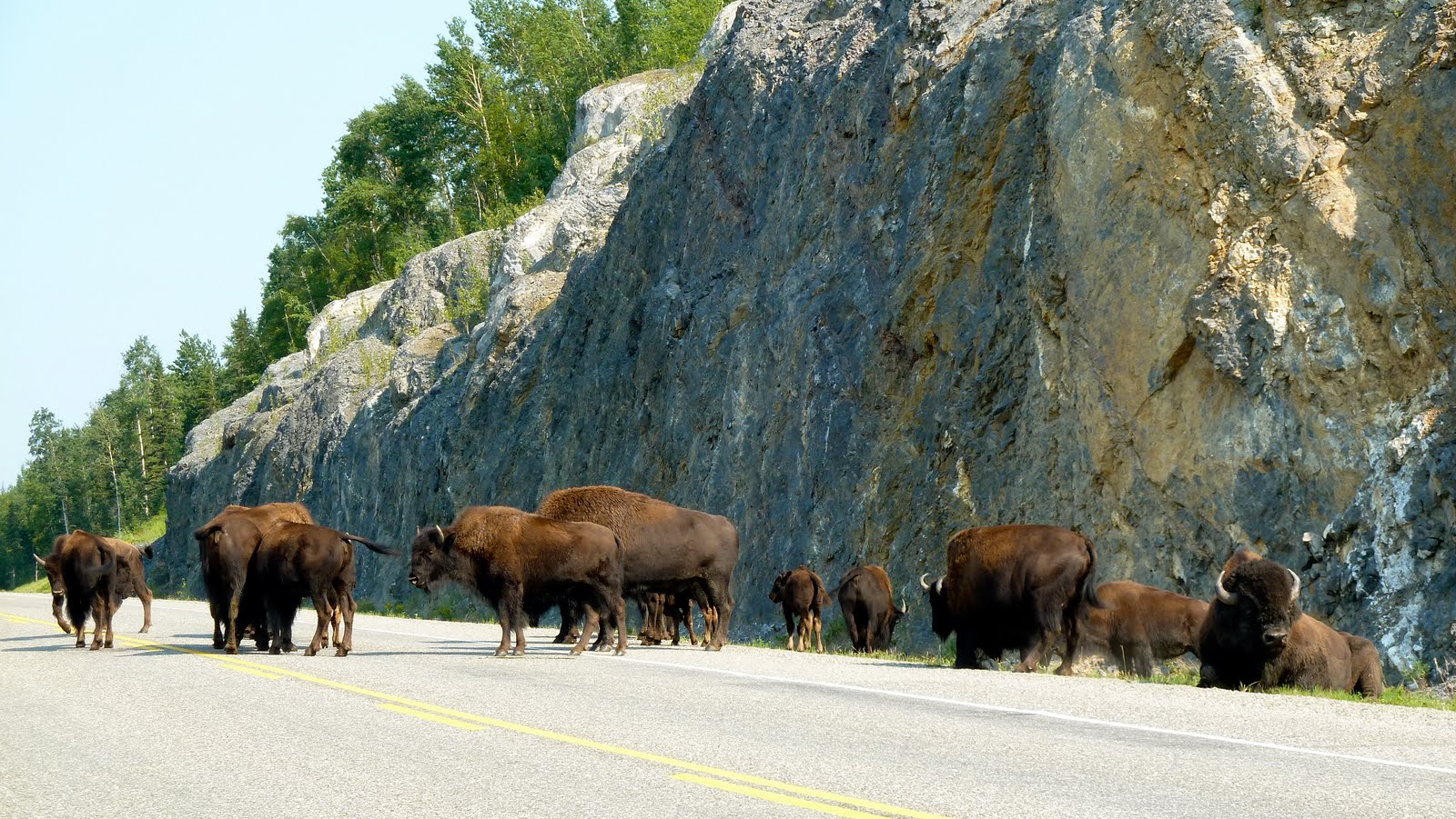 After Liard, we see herds of Buffalo taking the road.