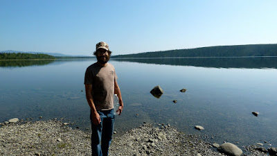 Dawson Peaks, situated outside of Teslin is this picturesque lakeside resort.  Their cabins and campgrounds were totally relaxing.  We enjoyed a wooded and shaded camping spot where we got to enjoy nature and wi-fi alike!  Also, we celebrated Charlie's birthday, surrounded in nature, just the way we like it.  We ate heartily at their restaurant and walked around the tranquil Morley Bay (an off-shoot of Teslin Lake) with 360 superb views of black spruce covered forest.  Dave, the well-traveled resort owner was very hospitable, offering us a place to camp in the future, even when closed after the summer season.