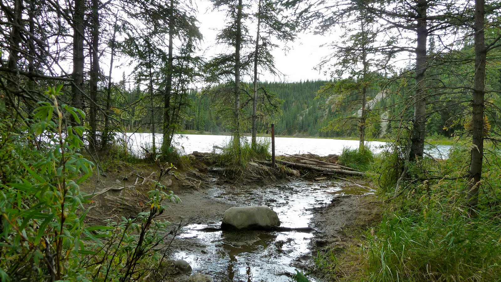 Another view of Horseshoe Lake with an even larger beaver dam.