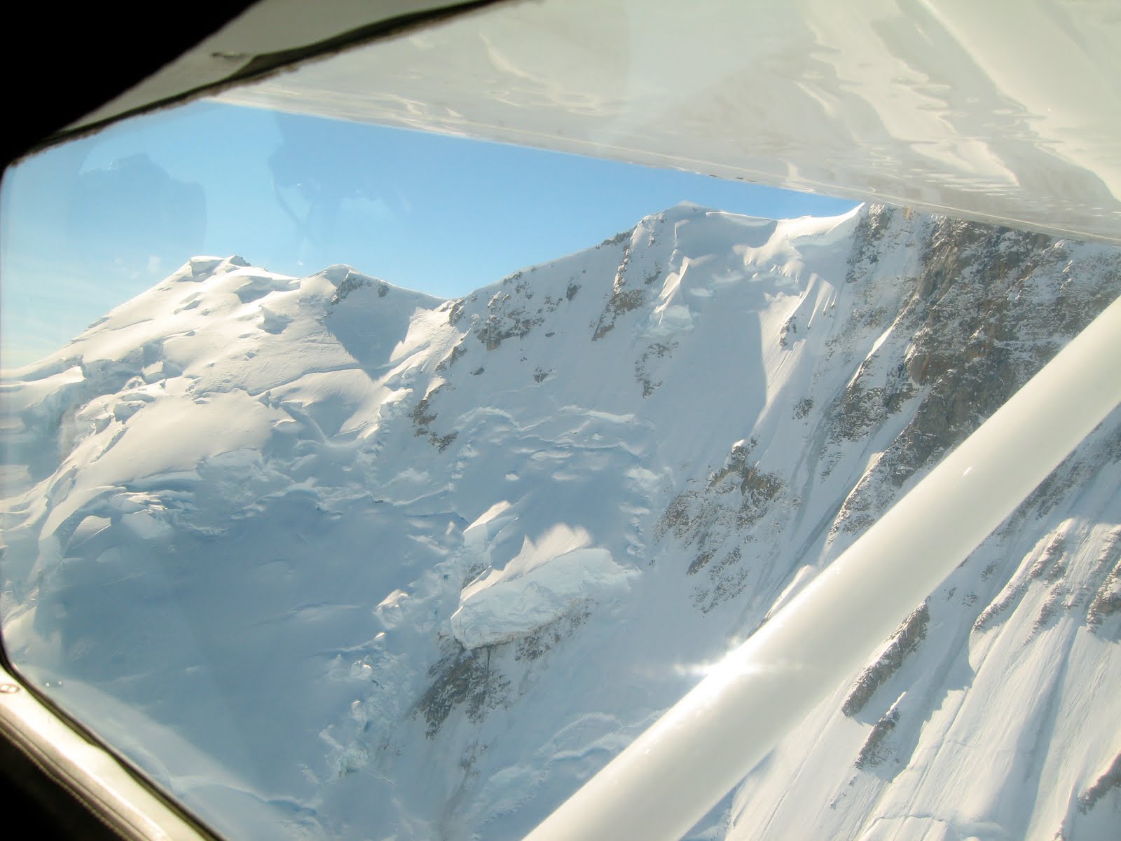 First view of the Valley glacier with the plane's wing.