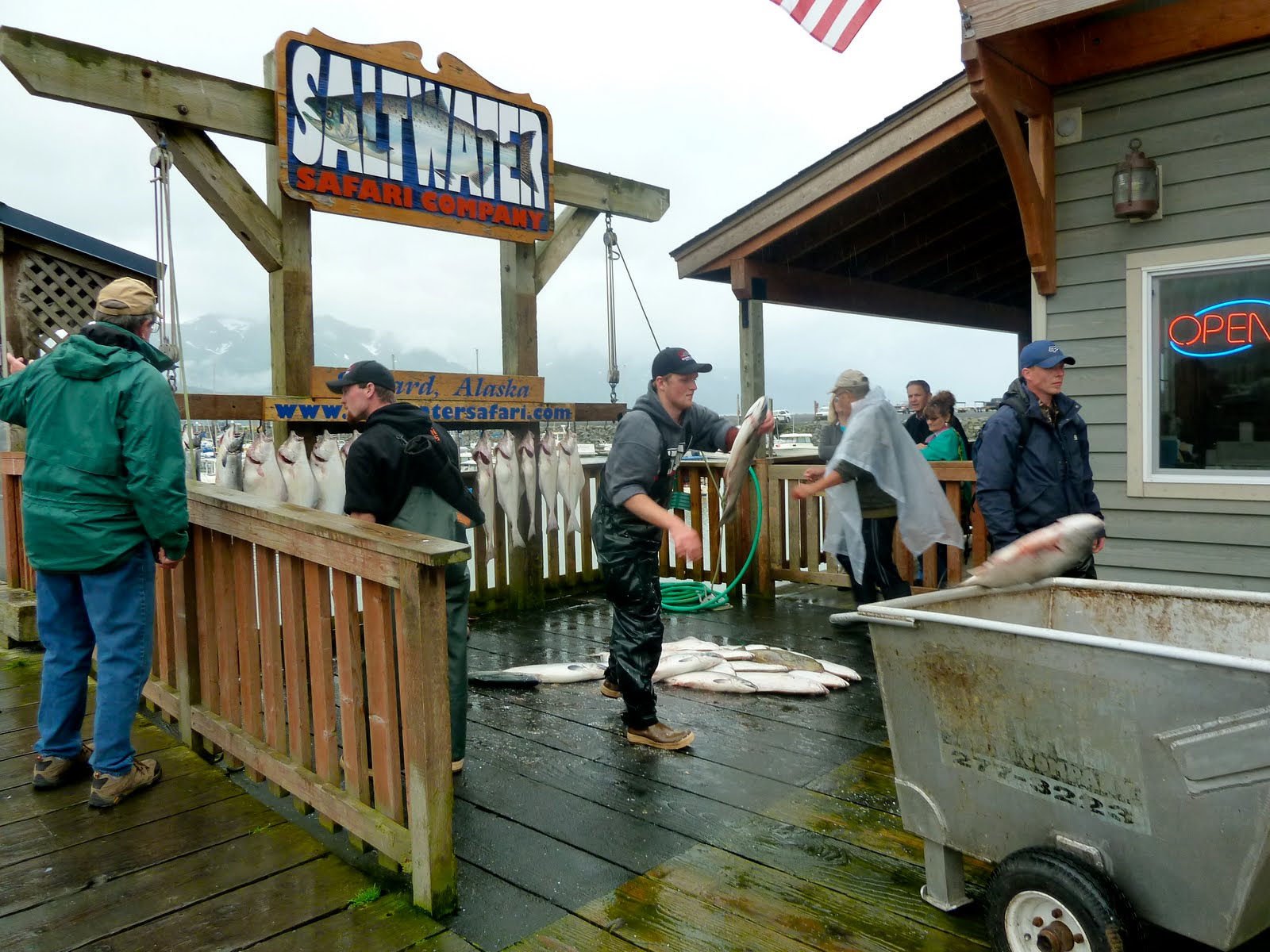 Alaskan Halibut catches of the day, being thrown in the cart!