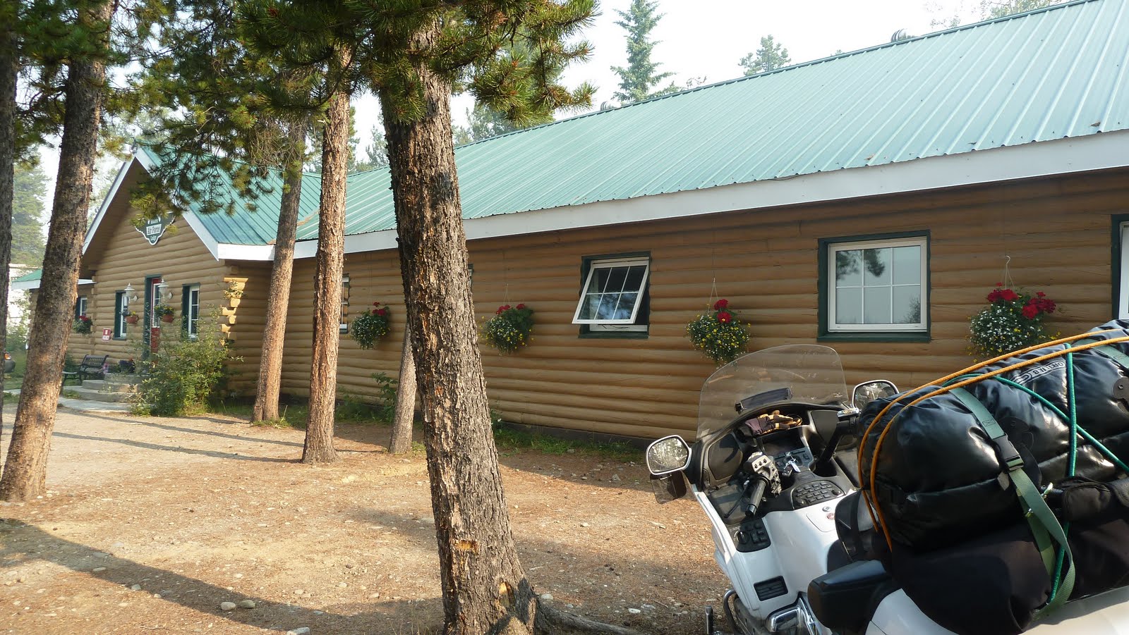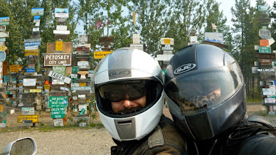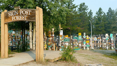 July 29, 2010 - Heading north on the 97 Alaska Hwy, we arrive our overnight stop at Watson Lake after 130 miles. Finally, we cross over to the Yukon Territory! We stumble upon the Air Force Lodge, a quaint motel. Completely rebuilt, this historical site was once a WWII U.S. pilots' barracks, ironically ran and owned by a German. Michael, our German host paid homage to the antiquated spirit and refurbished the place with much charm. The place was spotless and we thoroughly enjoyed our overnight stay.
