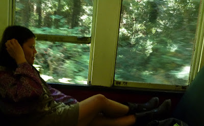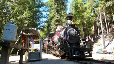 Driving on the gnarliest switchbacks since the Appalachians, we worked our way to the coast heading first north on the 101, then west on the 20 for 39 miles for our steam train ride. Steam train passenger service started in 1904 as a logging railroad to haul the massive Redwood logs to Mendocino Coast sawmills. The ride took us back in time, heading 21 miles to the heart of the Redwoods and back, in an old-school train car with original, antiquated decor and upholstery.